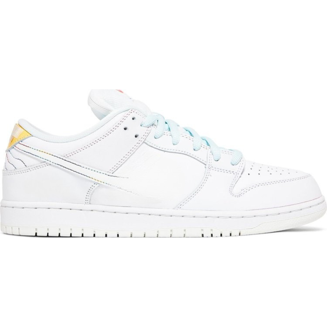 Released during Pride Month 2022, the ND - SB 'Be True' celebrates the LGBTQIA+ community with a unique design centered on self-expression. The low-cut silhouette features a leather upper with a white top layer designed to wear away, revealing multicolored panels underneath. Nk branding is debossed on mismatched heel tabs — one in vibrant purple and the other in teal — while “Be True” is embroidered on the lateral heel. The phrase also appears on the foam insole, which includes a responsive Zoom Air unit embedded in the heel for added comfort.